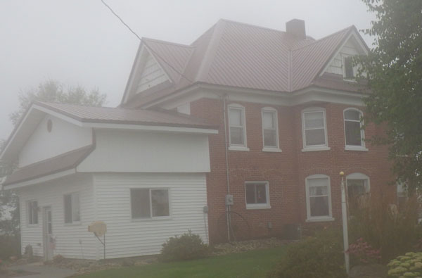 The house from the road today, the door on the right is the only front door, the window on the left was a door in 1905 for the hired help.
