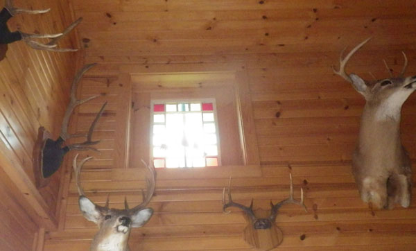 This is an addition on the left side of the house. It has the original stained glass window pictured in the 1946 peak of the front of the house installed high on the back of the addition.